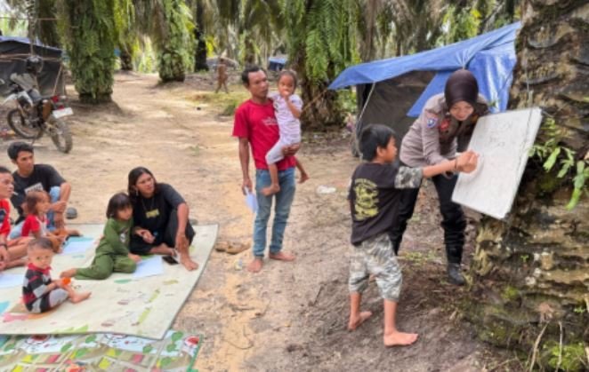 Bripda Nia Kurnia Lakukan Pembinaan Pendidikan Anak Suku Anak Dalam