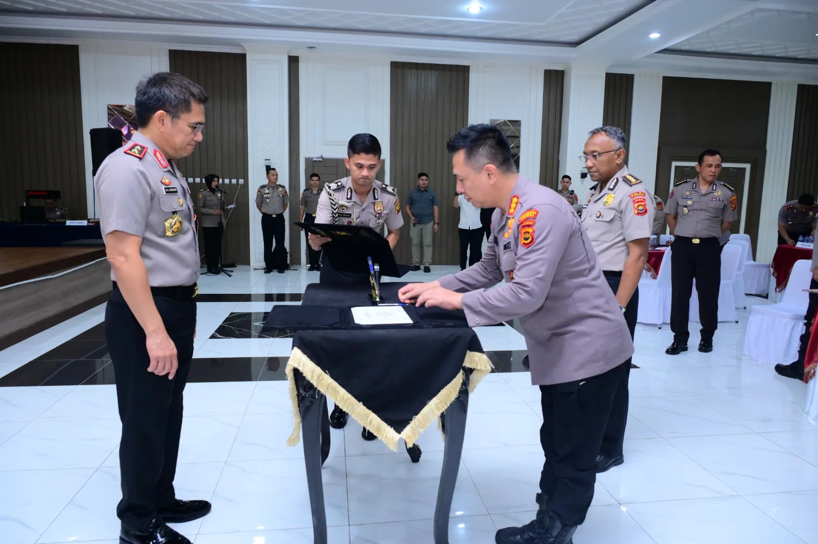 Acara tersebut dipimpin langsung oleh Kapolda Jambi, Irjen Pol. Krisno H. Siregar, serta dihadiri oleh Wakapolda Brigjen Pol. M. Mustaqim, Irwasda Kombes Pol. Jannus Parlindungan Siregar, para Pejabat Utama Polda Jambi, Kasatker/KPA, Kasubagrenmin, Kabagren Polres/Ta, serta Kaurkeu dan Kasikeu jajaran Polda Jambi.