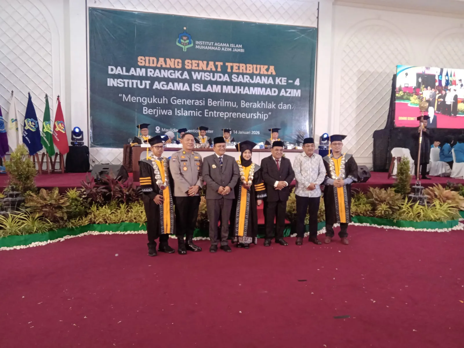 Infodaily.id – Polresta Jambi menghadiri Sidang Senat Terbuka dalam rangka Wisuda Sarjana ke-4 Institut Agama Islam (IAI) Muhammad Azim Jambi sebagai bentuk dukungan terhadap penguatan pendidikan berbasis nilai keislaman. Kegiatan tersebut berlangsung di Maulidia Convention Center, Kota Jambi, Sabtu (13/1/2026).